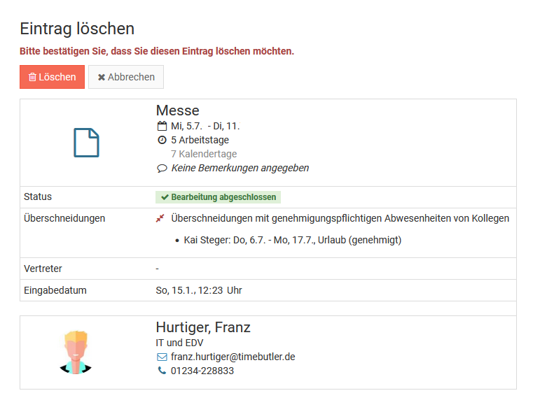 Abwesenheit löschen, Mitarbeiter-Nutzer