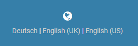 Wenn der Nutzer an seinem Nutzerkonto im Timebutler angemeldet ist, dann kann er auf einer beliebigen Seite im Timebutler oben rechts auf das Symbol mit der Weltkugel klicken und dort die Sprache wählen. Ebenso gibt es im Footer-Bereich (unten auf der Seite) auf allen Seiten im Timebutler die Links für die Sprachen ("Deutsch | English (UK) | English (US)").