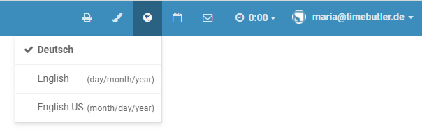 Jeder Nutzer kann selbst entscheiden, in welcher Sprache er Timebutler verwendet. Um die gewünschte Sprache auszuwählen, gibt es folgende Möglichkeiten: