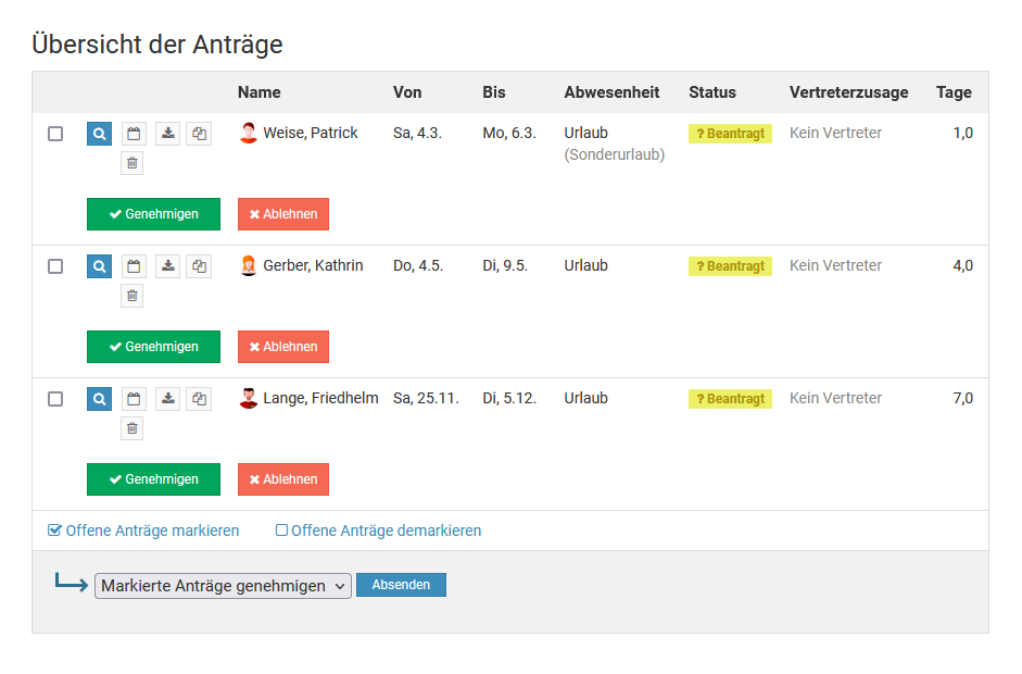 Screenshot: Urlaub genehmigen in der Listenansicht