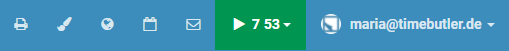 In der Leiste rechts oben auf allen Seiten ist die Anzeige der Stempeluhr nun grün und signalisiert, dass die Stempeluhr läuft: