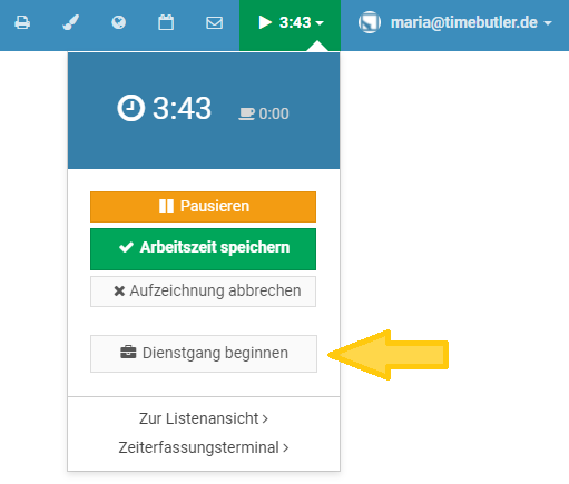 In der oberen Navigationsleiste wird während des Dienstgangs das Symbol angezeigt.