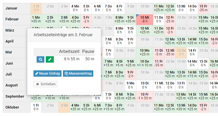 Ebenso können Sie beliebige Feiertage zuordnen, beispielsweise Heilig Abend, Silvester oder Altweiber und andere. Diese Feiertage sind keine gesetzlichen Feiertage, deswegen sind sie nicht Bestandteil der Feiertagsregelungen, die im Timebutler bereits hinterlegt sind.