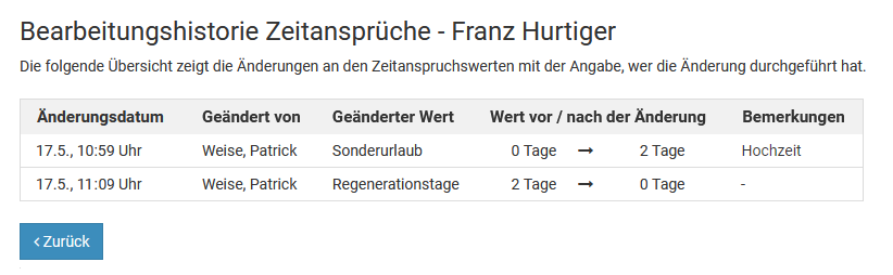 • · Bearbeitungshistorie der Abwesenheitseinträge