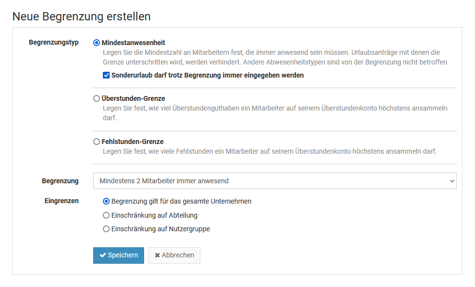 • · Neuen Abwesenheitstyp erstellen oder bearbeiten